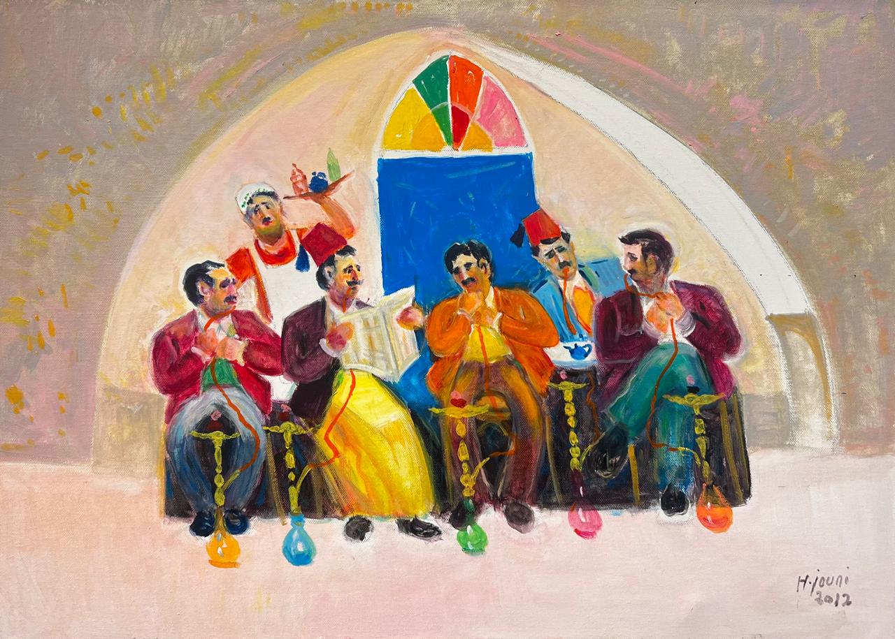 Artist: Hassan Jouni Title: أصحاب Year: 2012 Medium: Oil on canvas Height: 50 cm Width: 70 cm