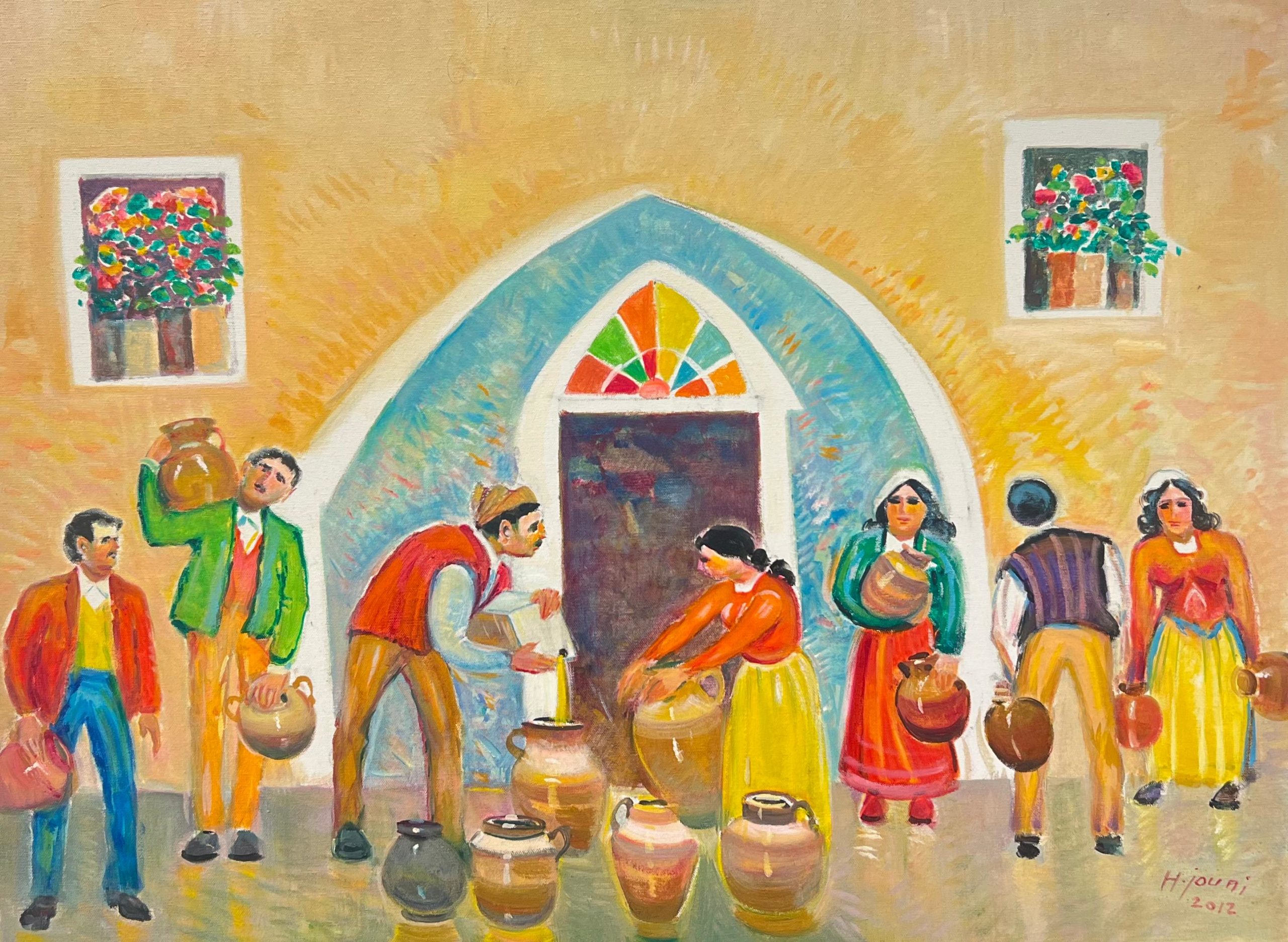 Artist: Hassan Jouni Title: بائع الزيت Year: 2012 Medium: Oil on canvas Height: 60 cm Width: 80 cm