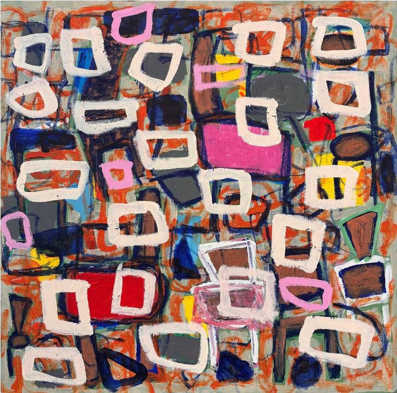 Artist: Nazar Mouchilian Title: Chairs Year: 2023 Medium: Acrylic on Canvas Height: 90 cm Width: 90 cm