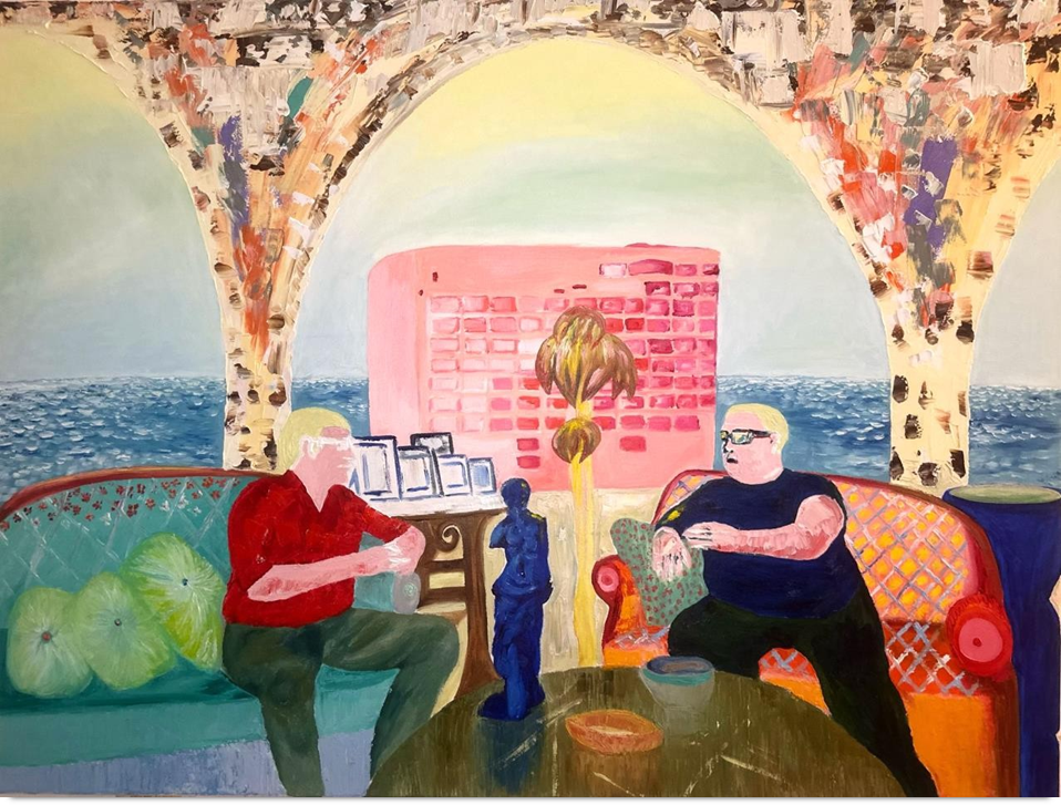 Artist: Mira El-Khalil Title: Comment Ça Va? Year: 2025 Medium: Oil on Canvas Height: 75 cm Width: 100 cm
