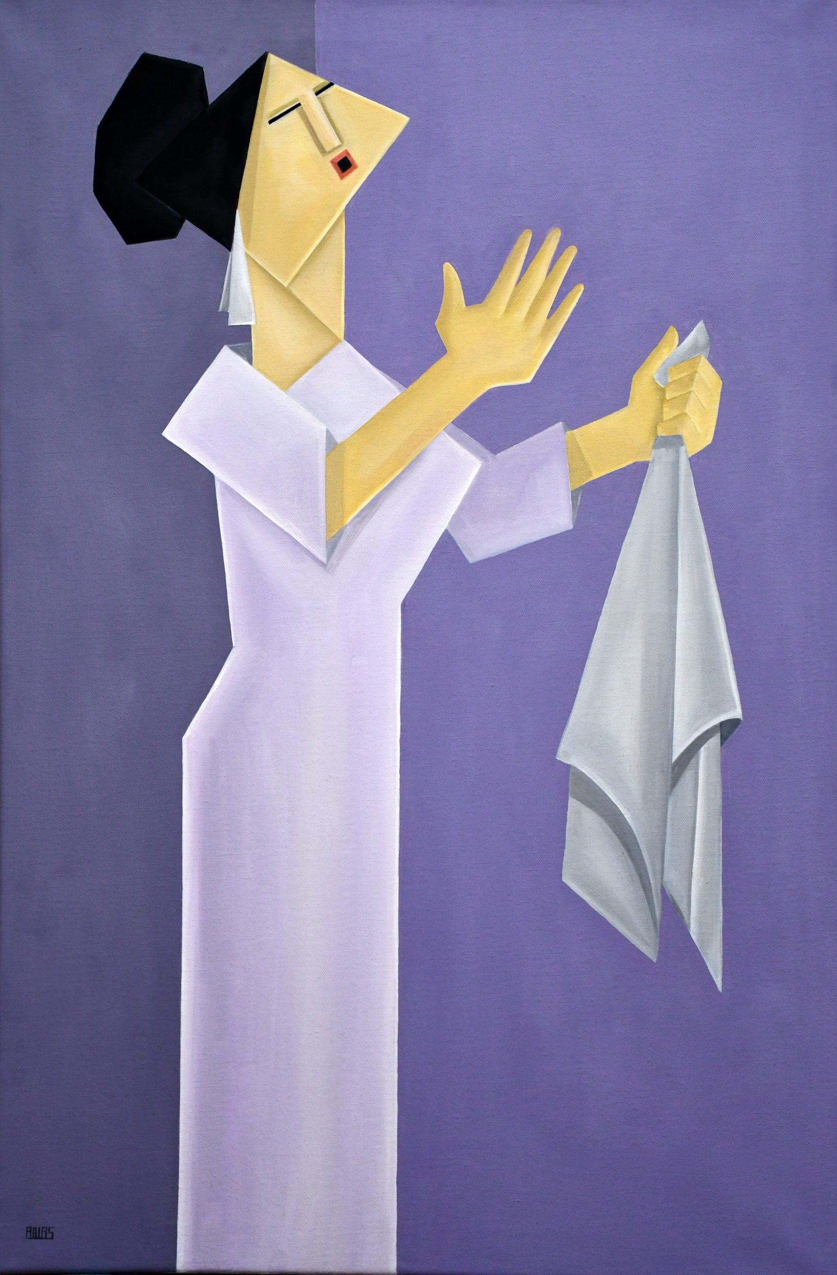 Artist: Anas El Lakkis Title: Fat Al Ma3ad Year: 2025 Medium: Oil on Canvas Height: 90 cm Width: 60 cm