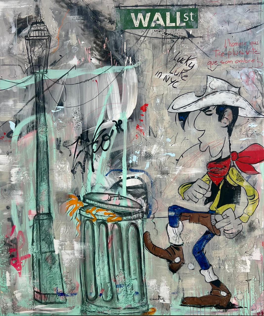 Artist: Dina Kadri Title: Lucky Luke in NYC Year: Medium: Mixed media on Canvas Height: 184 cm Width: 152 cm